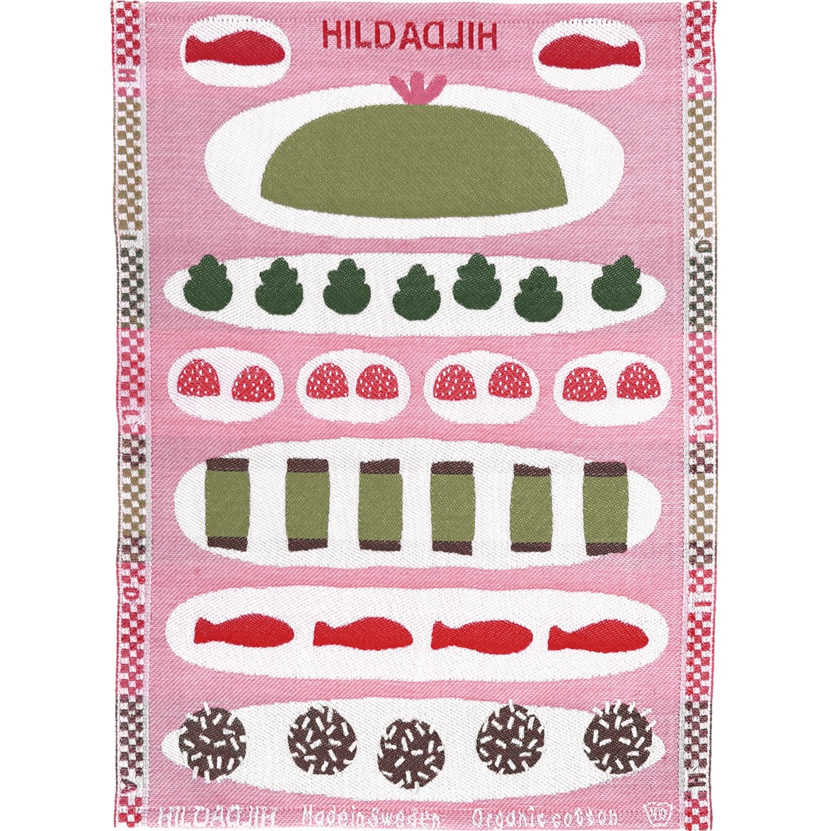 Liten handduk med godsaker som vävs i ekologisk bomull. Handduken fungerar perfekt som gästhandduk eller som en liten handduk i köket.