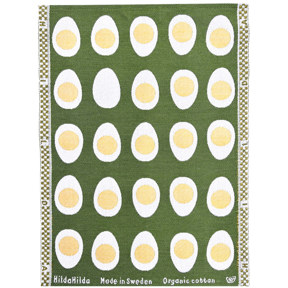 Liten handduk med ägg som vävs i ekologisk bomull. Handduken fungerar perfekt som gästhandduk eller som en liten handduk i köket.